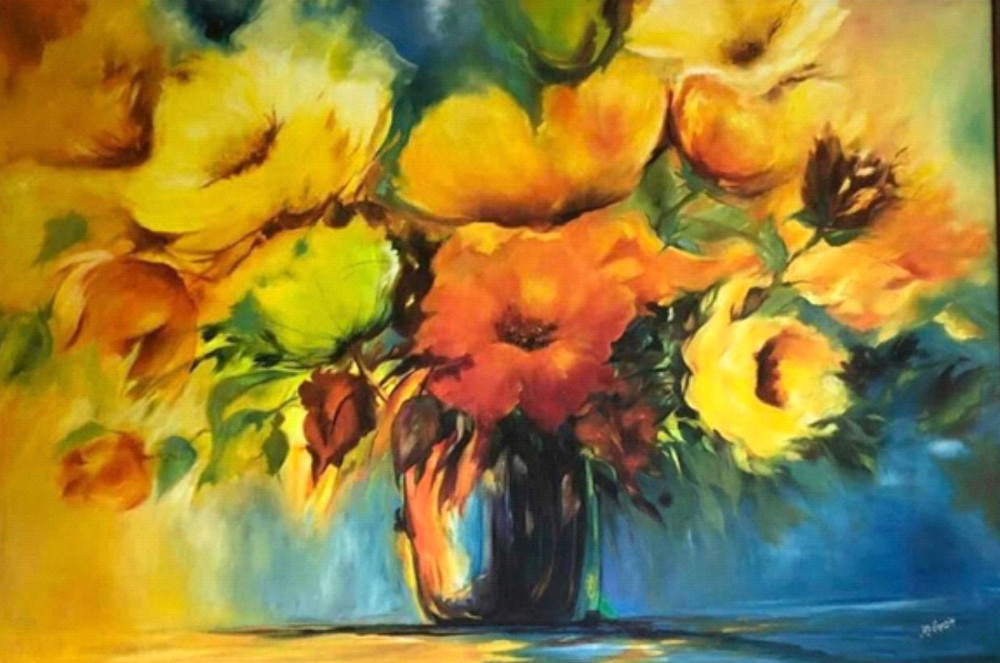María Eugenia Bastidas de Zarama, Florero rosas, óleo sobre lienzo, 1 x 0,70 m, 2020. Foto cortesía de la artista.